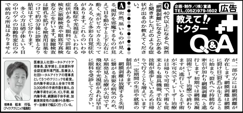 9月18日の福島民報「教えてドクターQ&A」に掲載されました。